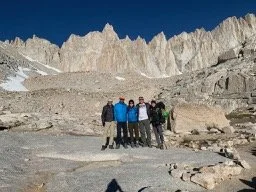 So, the five of us set out Sunday morning at 7:30 am, already an hour behind schedule. Some of us had camped at the Whitney Portal campground and some had stayed at a hotel in Lone Pine to get that one last shower in. It took a bit longer than expected for all of us to eat and pack up, pack down (lighten the load as much as possible) and try just one last time to poop before we start (if you’ve hiked Whitney, or really just backpacked in general, you’ll know why that matters). We got to the trail head, weighed our packs and finally got moving. Our packs were all pretty similar in weight. Jay’s was 32 lbs, Doug’s and mine were 34 lbs and Joe weighed in at 36 lbs. Spencer’s was only 25 lbs or so, but he’s only thirteen years old and sharing a tent with his uncle Jay, so that was to be expected.